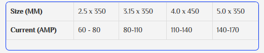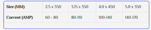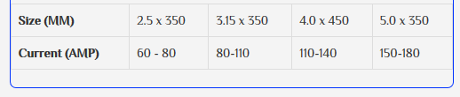 Electrodes should be dry at the time of use. Moist electrodes should be re-dried at 2000C for 1 hour. Area to be welded must be free from oil/grease or other contaminations.